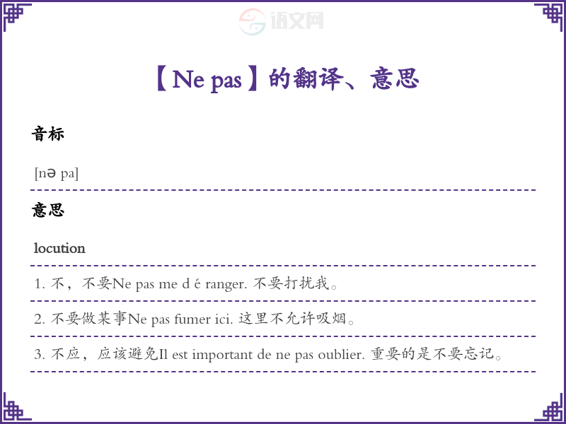 【Ne pas】是什么意思、字义解释