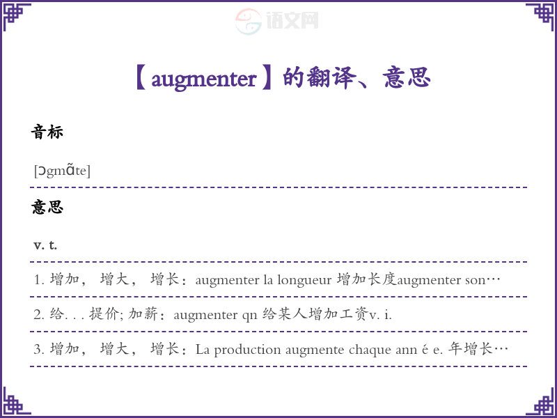 【augmenter】 派: 用法: 名词变化: 近义词: 反义词: 联想词