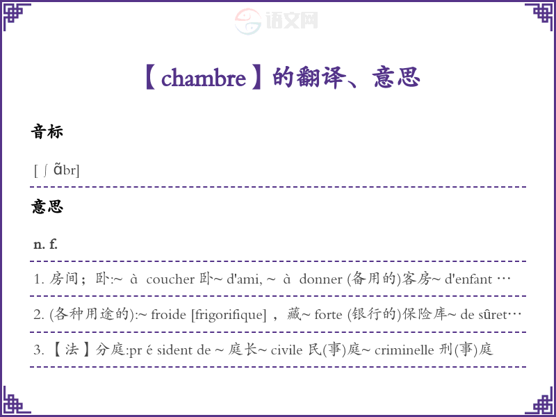 chambre法语的中文翻译、意思