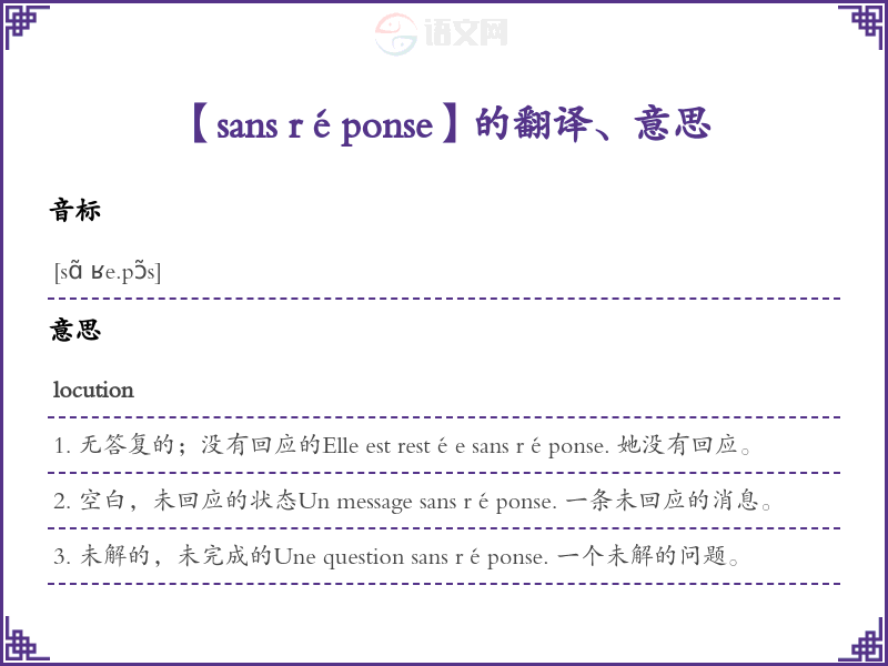 【sans réponse】是什么意思、字义解释