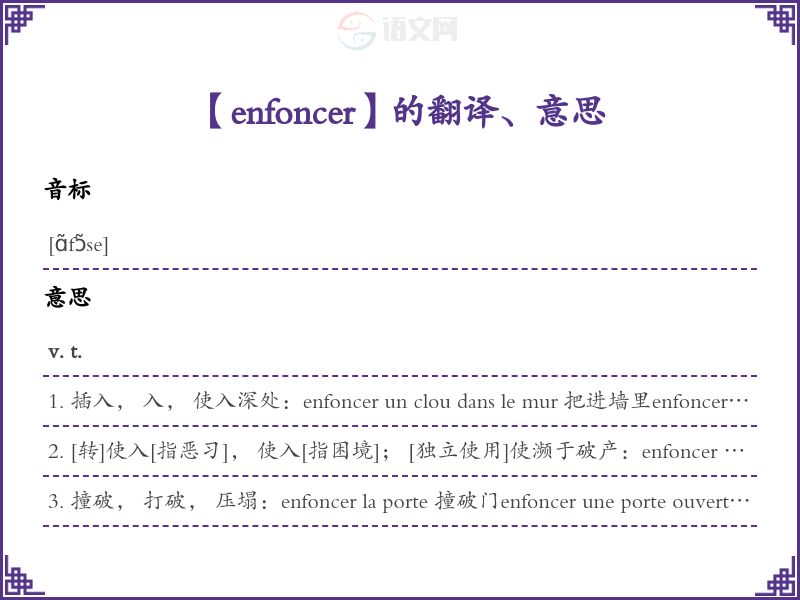 enfoncer法语的中文翻译、意思