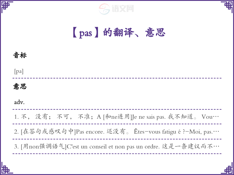 pas法语的中文翻译、意思