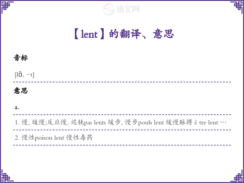 【lent】 派生: 联想: 近义词: 反义词: 联想词