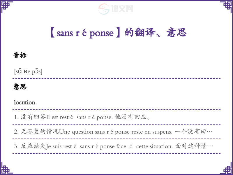 【sans réponse】是什么意思、字义解释