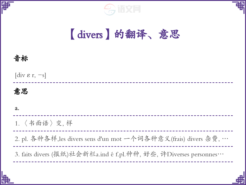 divers法语的中文翻译、意思
