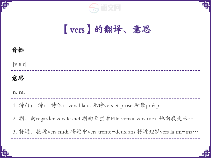 vers法语的中文翻译、意思