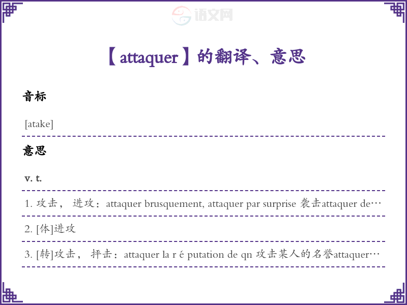 【attaquer】是什么意思、字义解释