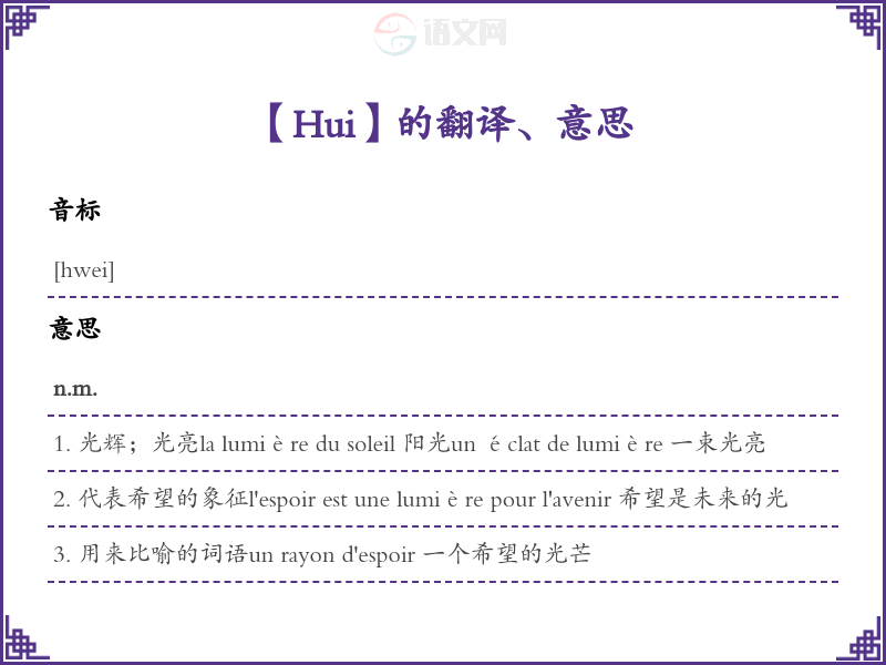 Hui法语的中文翻译、意思