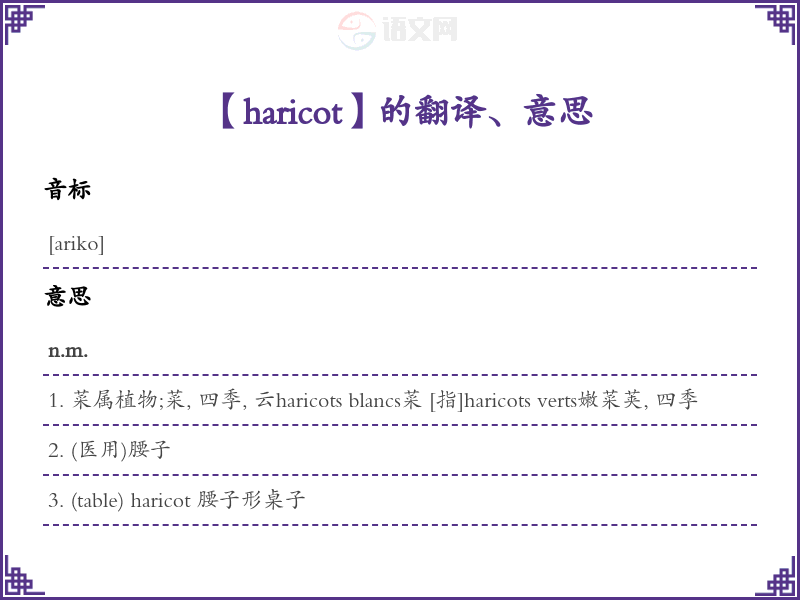 【haricot】是什么意思、字义解释
