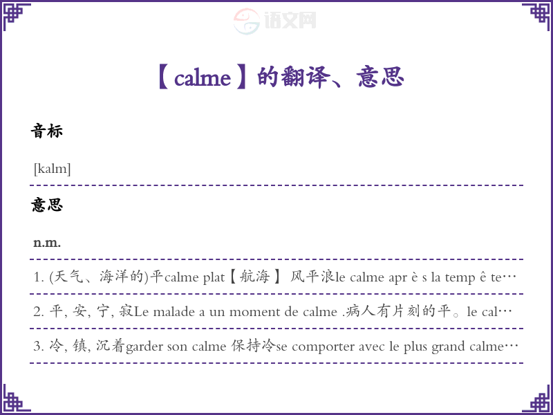 calme法语的中文翻译、意思