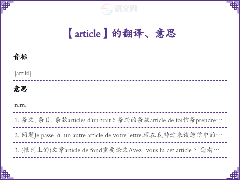article法语的中文翻译、意思