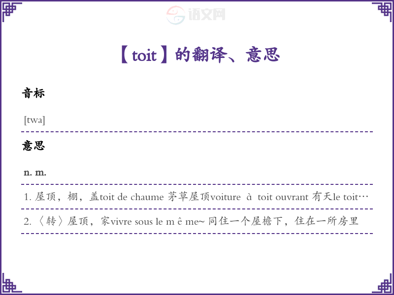 toit法语的中文翻译、意思