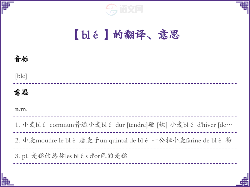 blé法语的中文翻译、意思
