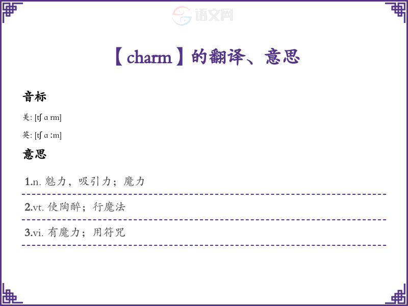 通过以上分析,希望你能更好地理解和记忆“charm”这个单词的用法和含义。