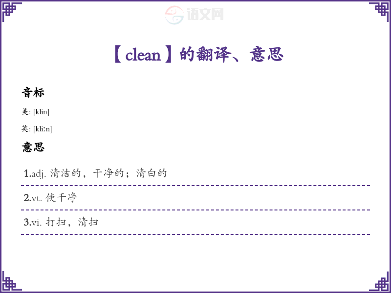 通过以上分析,可以全面掌握“clean”这个单词的含义和用法。