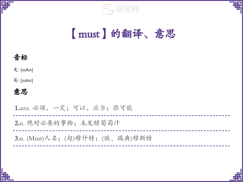 通过以上分析,可以帮助学*者更好地理解和应用 "must" 这个单词。