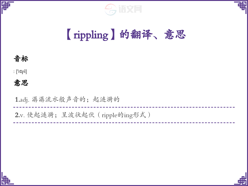 - 词性:动词(ripple)及形容词(rippling)。