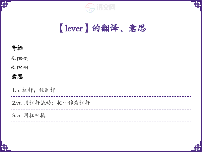 - 在牛津和美国的教材中,lever常见于物理学、工程学及基础科学的讨论,适合高中生及以上学龄段。